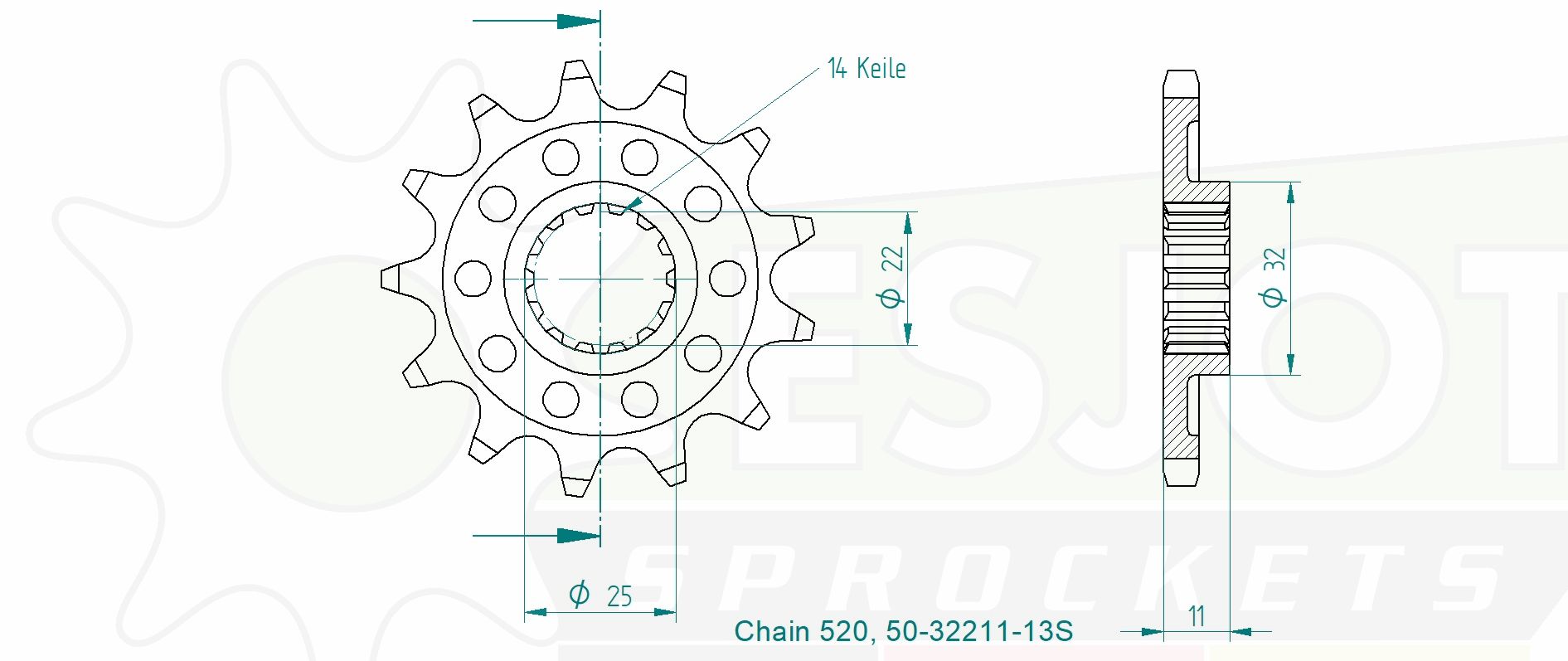 Material: Stahl Sport Zähnezahl: 13 Zähnevarianten: 12 - 13 - 14 Artikel-Nr. 50-32211-13S