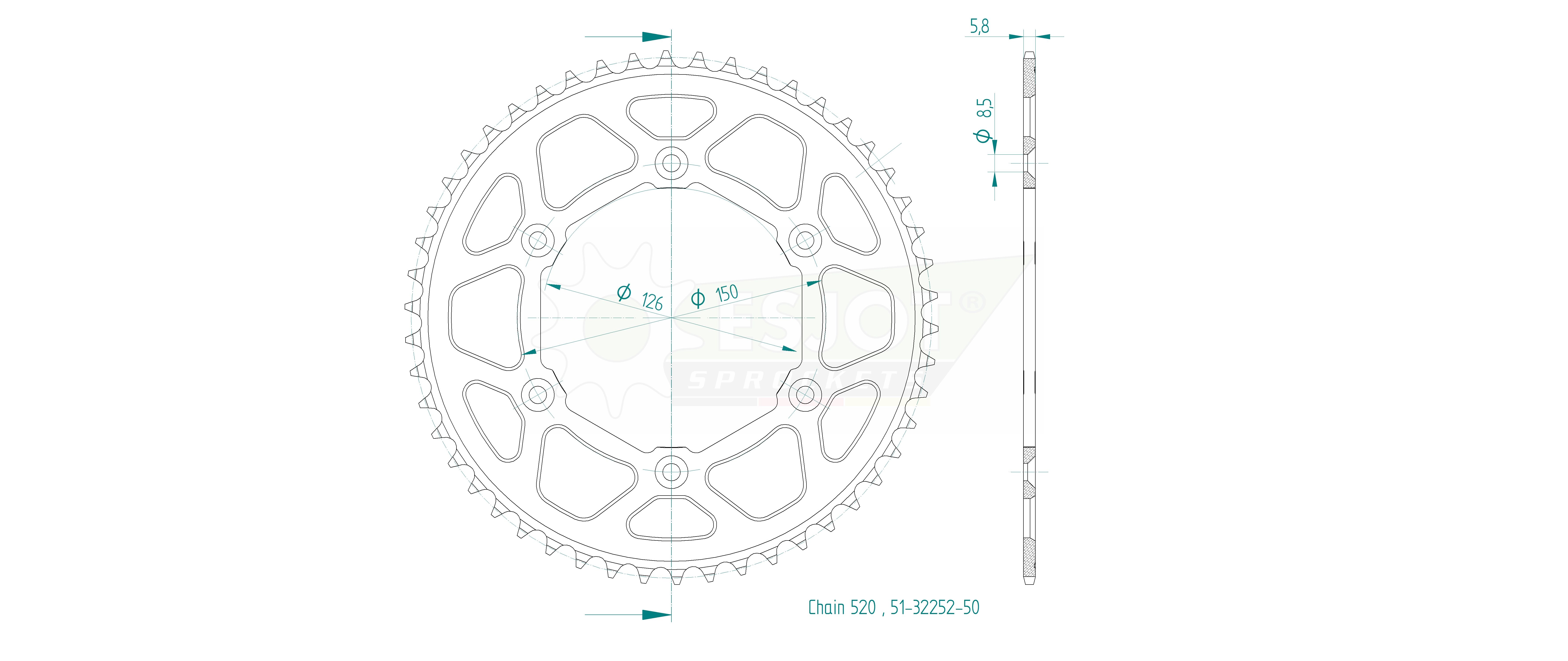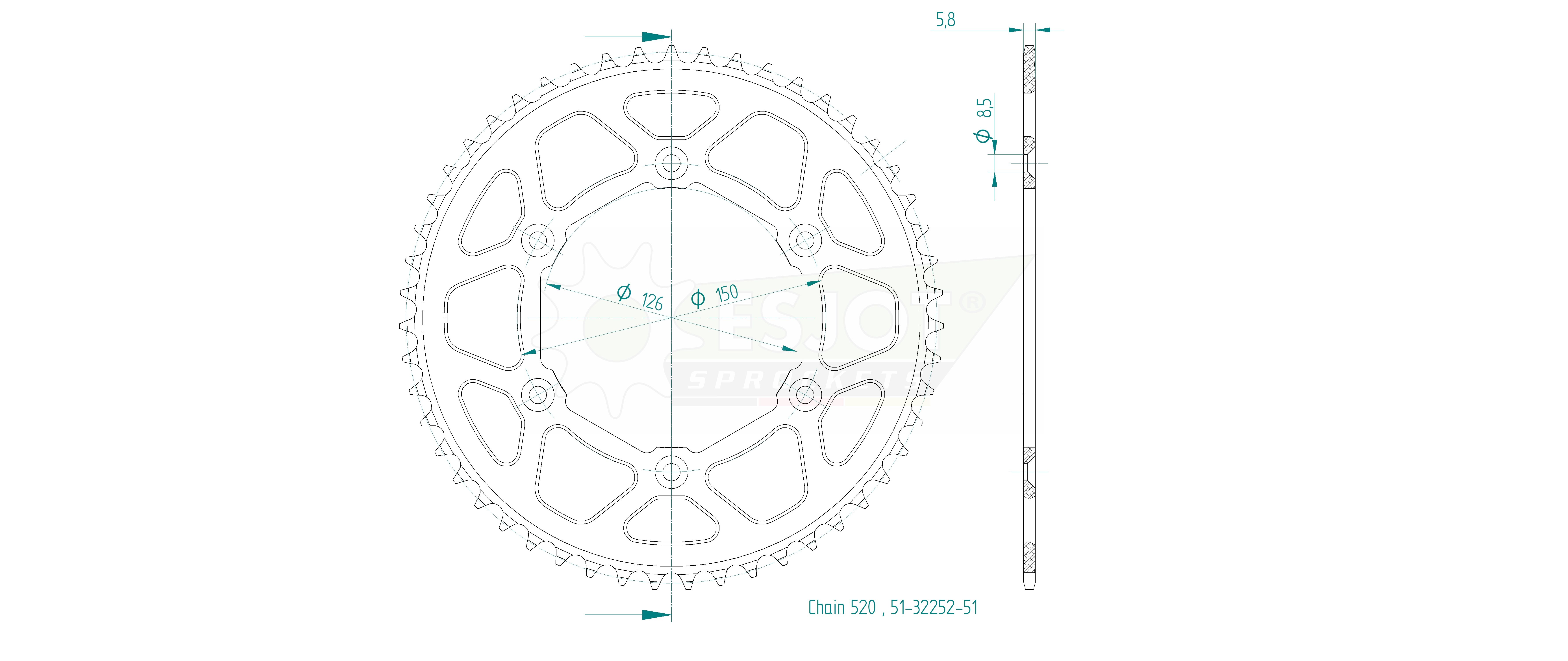 Material: Aluminium Zähnezahl: 49 Zähnevarianten: 47 - 48 - 49 - 50 - 51 Artikel-Nr. 51-32252-49