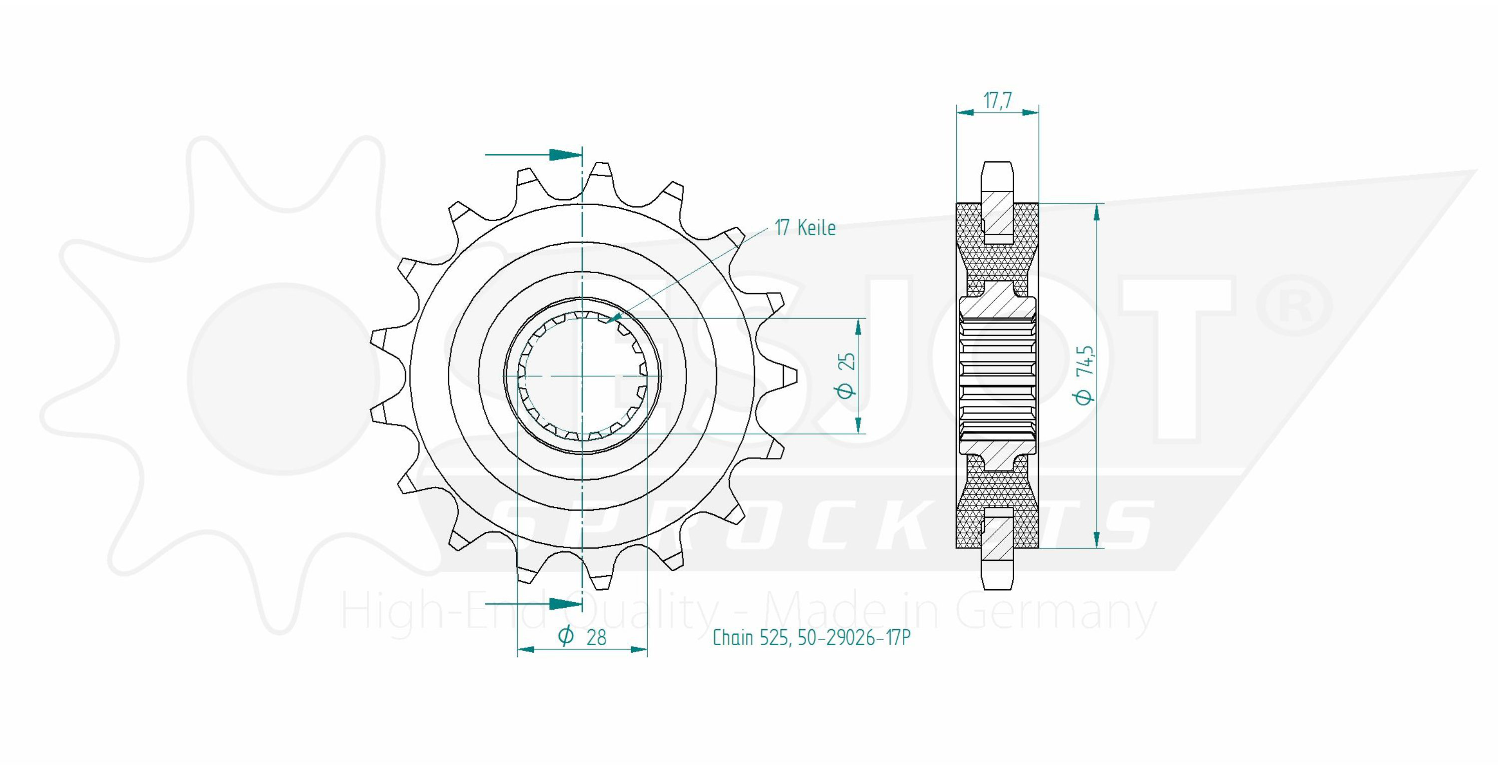 Baujahr: 2024-2026 / 1390ccm / Kette 525 / Glieder 112 / Übersetzung: 17 : 38