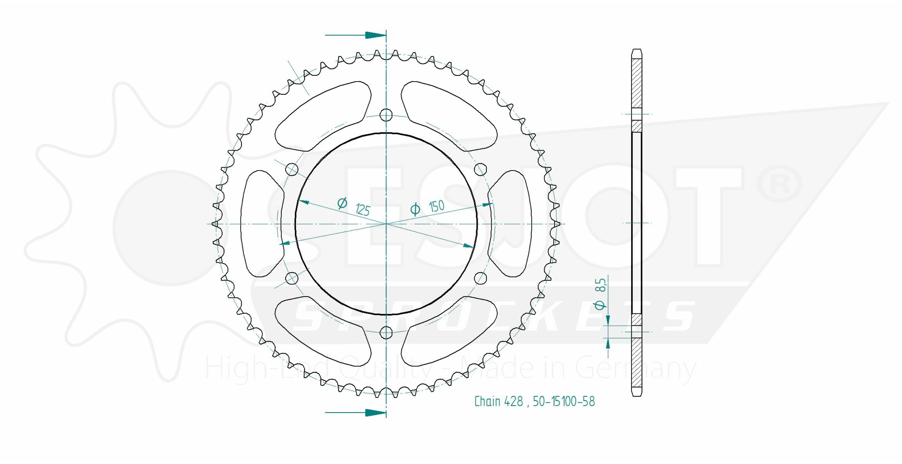 Material: Stahl Zähnezahl: 58 Artikel-Nr. 50-15100-58